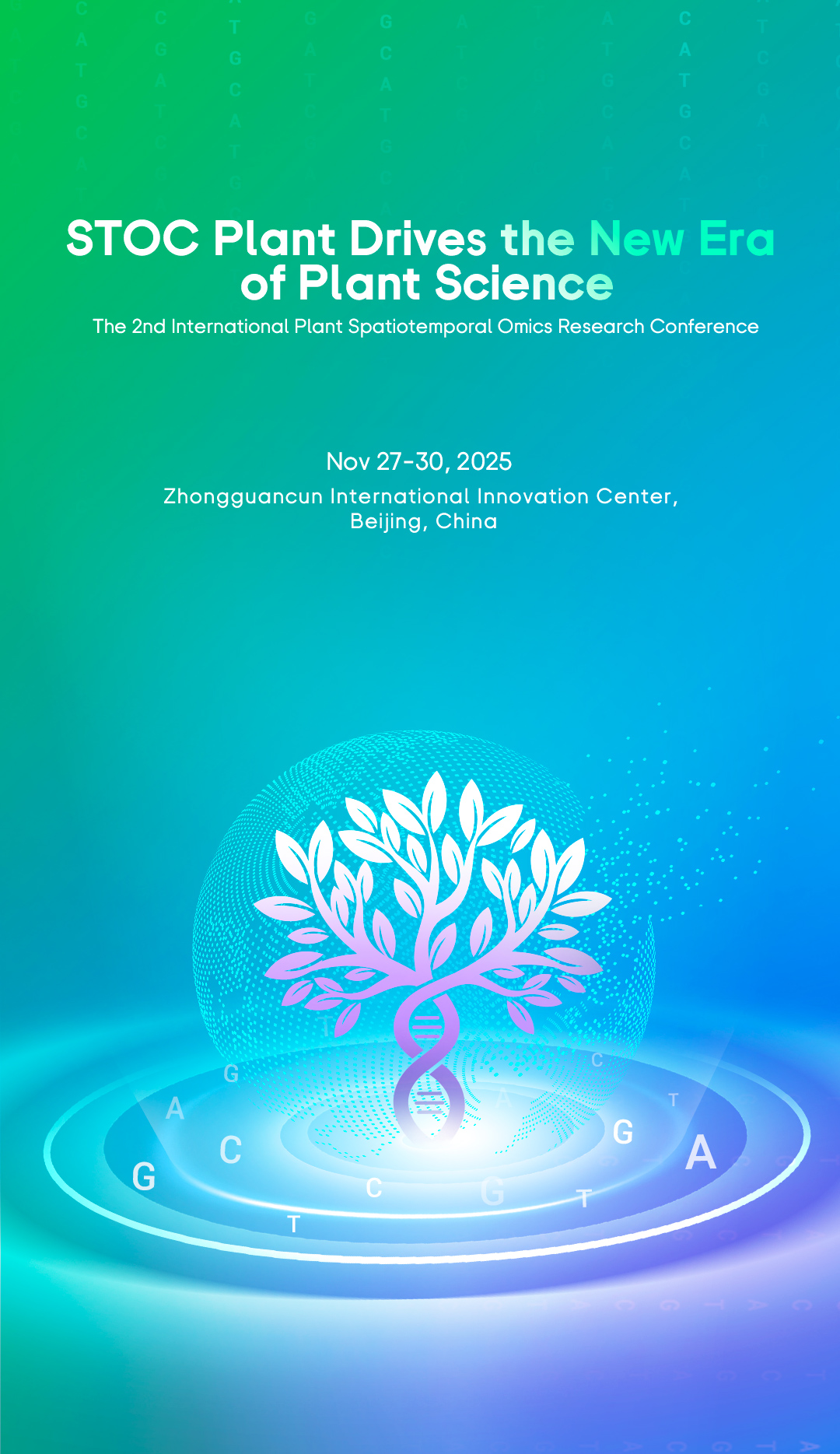 Spatiotemporal omics have provided great new opportunities to systematically understand biological processes. The second International Plant SpatioTemporal Omics Research Conference will be held in Beijing, China, from November 27th-30th, 2025. This conference aims to unite researchers worldwide to share their scientific efforts in spatiotemporal omics in plant research and to discuss the further development of STOC Plant. *STOC Plant 2025 is hosted by Plant Spatiotemporal Omics Consortium (STOC Plant) and organized by BGI Research, Beijing, Southern University of Science and Technology, and GigaScience.