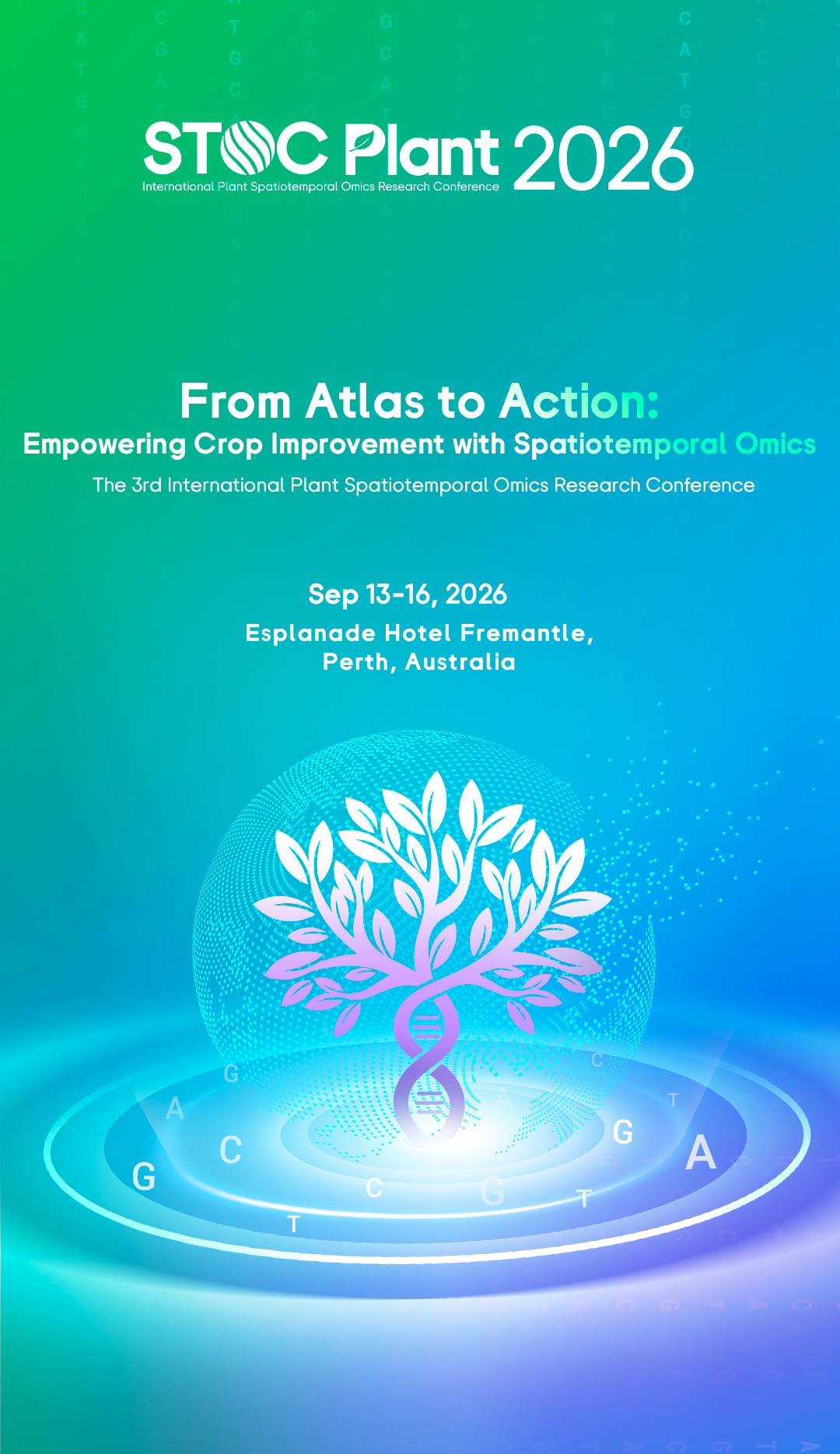 Spatiotemporal omics have provided great new opportunities to systematically understand biological processes. The third International Plant Spatiotemporal Omics Research Conference will be held in Perth, Australia, from September 13-16, 2026. This conference aims to unite researchers worldwide to share their scientific efforts in spatiotemporal omics in plant research and to discuss the further development of STOC Plant. *STOC Plant 2026 is organized by Murdoch University, the State Key Laboratory of Genome and Multi-omics Technologies, and the Plant Spatiotemporal Omics Consortium (STOC Plant); co-organized by BGI Research; and in collaboration with BGI, MGI, and Adelaide University.